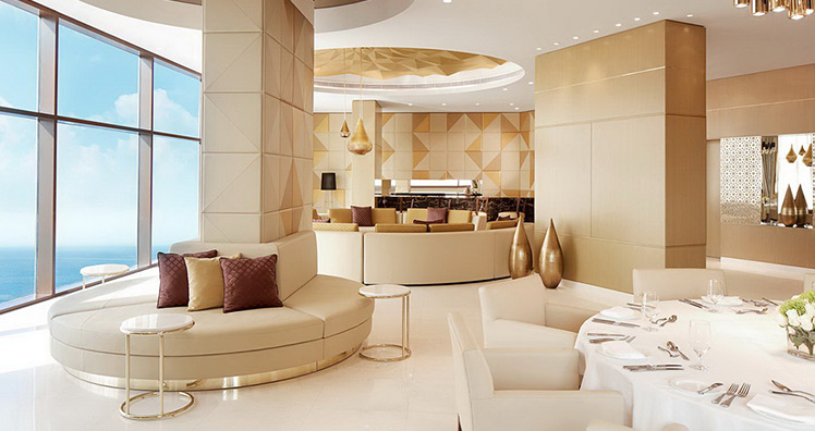 Von beiden Royal Penthouse Suiten des Fairmont Ajman erhalten die Gäste einen unvergleichlichen Panoramablick auf die Skyline der Stadt und auf den Arabischen Golf. In den zweistöckigen, 500 Quadratmeter großen Suiten in der obersten Etage des Luxushotels mit raumhohen Fensterfronten wird bester Luxus geboten. Geräumige Spa-Marmorbäder mit Doppel-Einheit Regenduschen und übergroßen Soak-Wannen ergänzen drei großzügige Master-Schlafzimmer, die sich auch auf vier erweitert lassen. Die Royal Penthouse Suiten verfügen außerdem über einen separaten Wohnbereich, ein Esszimmer, einen Entertainment-Bereich, eine voll ausgestattete Küche und Bar sowie Arbeitsbereiche mit modernster Technik.