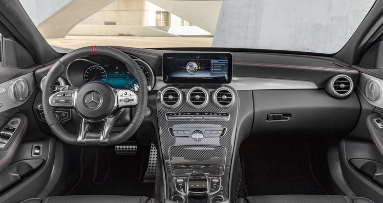 Abgerundet wird das Design durch Bedienelemente, die fast ohne Schalter und Knöpfe auskommen. Alle wesentlichen Funktionen lassen sich über das volldigitale Kombiinstrument mit 31,2 Zentimetern Bildschirmdiagonale regeln. Das neue AMG Lenkrad mit Touch-Control Buttons erleichtert die Bedienung des Multimediasystems. Auf Wunsch werden die klassischen Rundinstrumente durch ein volldigitales Kombiinstrument mit 12,3 Zoll Bildschirmdiagonale ersetzt. Das gibt den Mercedes-AMG C 43 4MATIC-Modellen auch im Innenraum eine noch modernere Ästhetik.