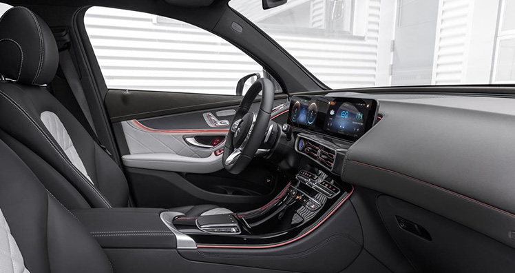 Weiters erhält der EQC das wegweisende Multimediasystem MBUX – Mercedes-Benz User Experience, ergänzt um zahlreiche EQ-spezifische Inhalte wie beispielsweise die Anzeige von Reichweite, Ladezustand und Energiefluss. EQ-optimierte Navigation, Fahrprogramme, Ladestrom und Abfahrtszeit lassen sich ebenfalls über MBUX bedienen und einstellen. Mit dem Mercedes „me“ verfügt der EQC über Services und Funktionen wie Vorklimatisierung über eine App, eine optimierte Navigation unter Berücksichtigung der kürzesten Ladezeit, die Routenplanung kann in Zukunft ebenfalls mittels App off- bzw. onboard erfolgen, über sie sind auch die Ladestationen unterwegs leicht zu finden.