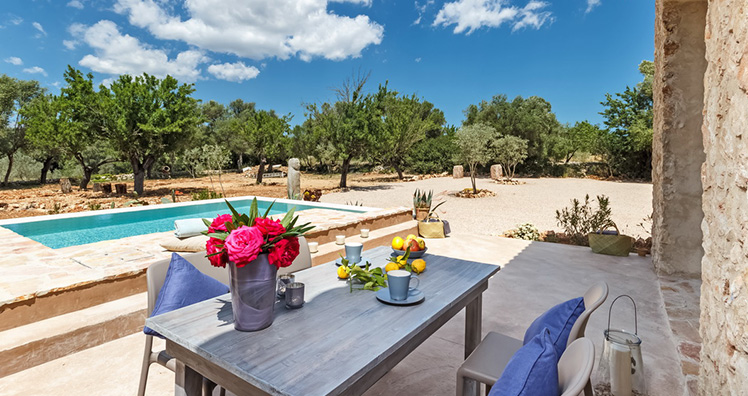 Wer das ruhige Landleben genießen möchte, aber keine Lust auf Hotel hat, wird die ruhige Ferienfinca bei Costitx lieben. Das kleine Luxus-Ferienhaus mit privatem Pool in einer mediterranen Gartenlandschaft ist der ideale Rückzugsort für entspannten Urlaub zu zweit. Es bietet mit seiner hübschen Natursteinfassade ein behagliches Wohngefühl im Wohn-Esszimmer mit offener Küche und im gemütlichen Schlafzimmer, gehalten im modernen Landhausstil. Der uneinsehbare Pool und die bequemen Sonnenliegen auf der Terrasse sind wie geschaffen für eine traute Zweisamkeit. (red)