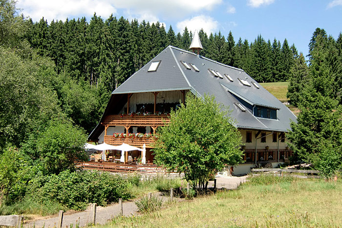 Das Anwesen wurde 1603 erbaut und war bis ins 18. Jahrhundert Getreidemühle und Lieferant für ein nahe gelegenes Kloster. Herzstück des romantischen Landhauses ist das Restaurant "Kuhstall", in dem Rolf Pochert an fünf Abenden pro Woche mehrgängige Menüs zaubert. Speisekarte gibt’s keine, gekocht wird, was die Saison und die nahe Umgebung gerade hergeben. Zum Wohnen stehen zehn Zimmer zur Verfügung; drei gemütliche Stuben, eine Badestube und der herrliche Garten laden zum süßen Nichtstun ein. Das „Landhaus Mühle“ von Katja Nowak und Rolf Pochert liegt im Herzen des Schwarzwaldes, zwischen Bergen und dem Schluchsee.