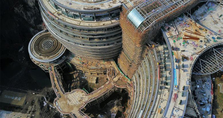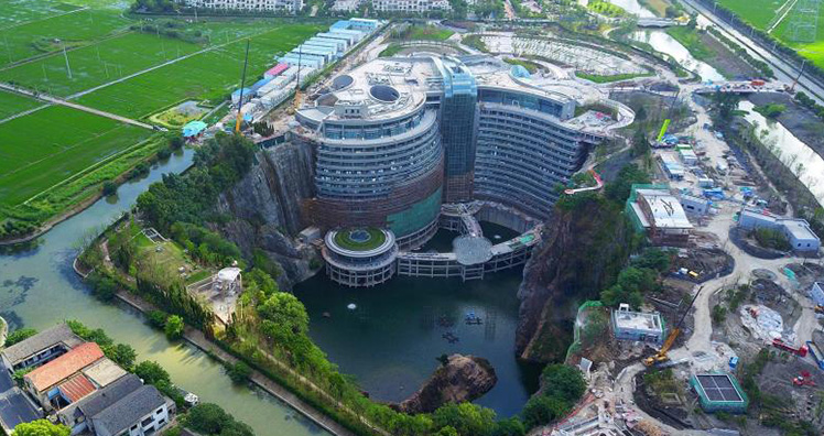 Mit der Errichtung eines Hotels der Superlative in einem ehemaligen Steinbruch in Songjiang, im Südwesten von Shanghai, nimmt der Betreiber Abstand von der, in dieser Region traditionellen, Wolkenkratzerarchitektur. Das „InterContinental Shanghai Wonderland“ soll demonstrieren, wie Raumgewinnung unter der Erde, gelingen kann, wenn man die natürlichen Gegebenheiten in das Projekt einbindet und auf diese Art auch Umweltschäden verhindert.