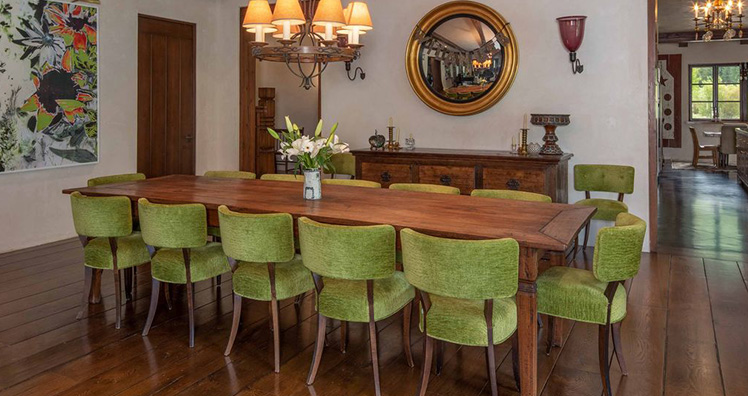 Das 32 Hektar große Grundstück liegt inmitten der Bergkette „Pioneer Mountains“ in der Nähe des bekannten Ferienort Sun Valley und grenzt an einen kleinen Wildbach, den „Cove Creek“. Passend zur Gegend, sind die Gebäude im traditionellen Lodge-Stil aus Holz und Stein errichtet. Das Anwesen umfasst neben dem Haupthaus, ein Gäste- und ein Verwalterhaus. Auf 980 Quadratmetern Wohnfläche befinden sich auf zwei Stockwerken sieben Schlafzimmer, acht Bäder und gemütliche Räume mit offenen Kaminen. Zudem gibt es eine Bar, eine Sauna, ein Fitnessstudio und einen Weinkeller.