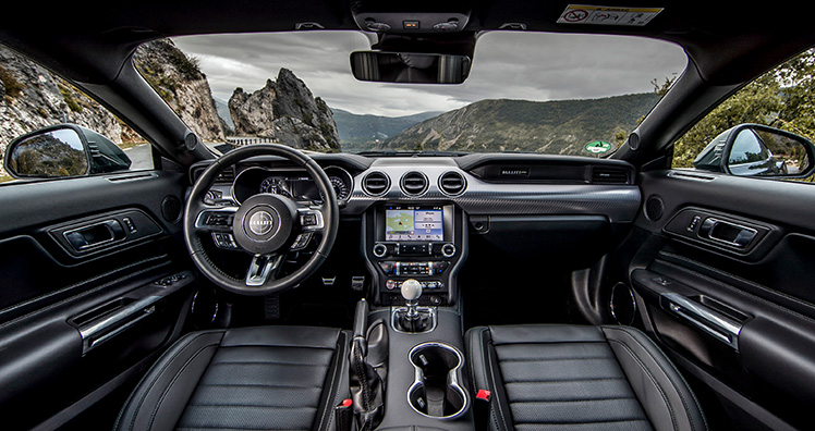 Etwas anderes, als ein Schaltgetriebe wie beim Original, käme bei diesem Modell wohl nicht infrage. Das 6-Gang-Schaltgetriebe wird genauso mit einem Billardkugel-Schaltknauf, wie seinerzeit von Steve McQueen, bedient. Über die elektronische Motorsteuerung gibt es mittels einer neuen Technologie, der Drehzahlanpassung von Ford, beim Herunterschalten einen kurzen Gas-Stoß. Sie passt einerseits die Motordrehzahl an den jeweils kleineren Gang an und erzielt sehr sanfte, nahtlose Schaltvorgänge.