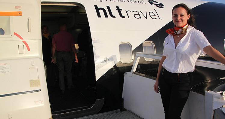 Melanie Frühwirt: Im Grunde ist ein Kreuzflug nichts anderes als eine Kreuzfahrt, nur das man eben im Privatjet von einer Destination zur anderen fliegt und so einen Kontinent bereist. Das ist für alle, die viel auf Komfort, Bequemlichkeit und Luxus Wert legen, die optimale Art zu reisen. Man checkt ein, gibt sein Gepäck ab und fliegt pünktlich ohne lästige Kontrollen zum ersten Etappenziel wo die Koffer schon am Zimmer sind. Das ist auch der Unterschied zu noch so teuren Charterflügen. Es gibt keine Warteschlangen am Check-In, kein Delay oder überfüllte Maschinen. Für die Unterbringung unserer Gäste wählen wir nur die besten Hotels, Lodges oder Villen. Wir chartern unterschiedlich große Flugzeuge, weil es davon abhängig ist, wo uns die Reise hinführt. Für Weltreisen buchen wir anderen Maschinen, als für die Kreuzflüge. Piloten und einen Teil der Cabin-Crew stellt der Jet-Anbieter, unsere eigene Crew, bestehend aus dem Bordkoch, einem wahren Küchenmagier – seinetwegen verzichten Gäste sogar auf Haubenmenüs in den besten Restaurants – und zwei weitere Crew-Mitglieder, die für ein richtiges Wohlfühl-Ambiente in der Kabine sorgen.