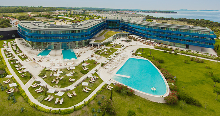 Auf der Halbinsel Punta Skala liegt das Falkensteiner Hotel & Spa Iadera. Herzstück des Hotels ist der 6.000 m² große Acquapura SPA mit Wasserwelten, Saunalandschaften, einem ganz in schwarz gehaltenem Hammam.