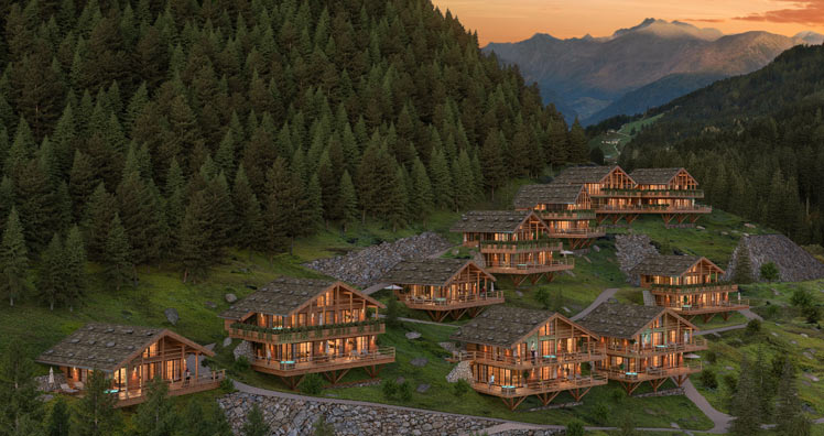Die neuen Chalets sind in traditioneller Südtiroler Holzbauweise errichtet. Naturmaterialien wie Holz, Stein, Glas, Lehm, Wolle und Lodenstoffe prägen den edlen alpinen Stil der Chalets. Im Winter kommen die Tiere zur Fütterung an die Futter-krippe ganz nahe an die Chalets und in den Sommermonaten trifft man das Wild in den frühen Morgen – und Abendstunden an.