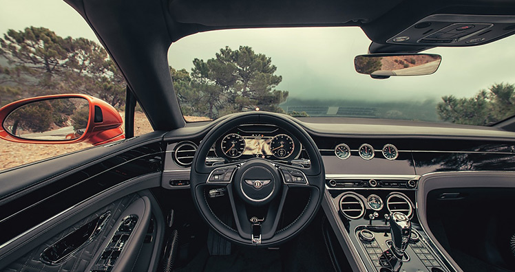 Wie bei den meisten Nobelfahrzeugen definiert sich der Luxus über den Innenraum. Allein für das Furnier verwendet Bentley zehn Quadratmeter feinstes Koa- oder Eukalyptus-Holz pro Auto. Dazu kommen jede Menge Klavierlack, Chrom und feinstes Leder. Designchef Stefan Sielaff verzichtete größtenteils auf riesige Monitore und Touchscreens, sein Konzept „Digital Detox“ setzt mehr auf Knöpfe und Schalter, obwohl auf Wunsch dann doch in der Mittelkonsole ein 12,3-Zoll-Bildschirm auftaucht, der sich vom Fahrer konfigurieren lässt. Allerdings dreht sich dieser Screen auf Knopfdruck nach hinten weg und es erscheinen drei analoge Instrumente, ein Kompass, eine Stoppuhr sowie eine Außentemperaturanzeige. Zeitgemäße Assistenten vom adaptiven Tempomat samt Spurhalter bis 250 Stundenkilometer bis hin zum Nachtsichtgerät ergänzen die Luxusausstattung.