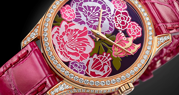 Jahr für Jahr kreiert Chopard einen neuen Zeitmesser zu Ehren der Pfingstrose. Ein besonderer Anlass für Sammler und Schöngeister, ist doch das Modell L.U.C XP Esprit de Fleurier Peony auf lediglich acht Exemplare limitiert. Für die jüngste Kreation setzt das Haus Chopard auf die kunstfertigen Hände seiner Handwerker. Das Zifferblatt allein ist eine prachtvolle Vermählung verschiedener Kunsthandwerke: Gravur in Gold, Präzisionsdruck und Perlmutt-Intarsien. Das 35 Millimeter große Uhrwerk wiederum, das Kaliber L.U.C 96.23-L, entwickelt und gefertigt von Chopard Manufacture, ist komplett mit sogenannter Fleurisanne-Gravur verziert, einer selten gewordenen Kunst, welche die Kunsthandwerker von Chopard allerdings perfekt beherrschen.