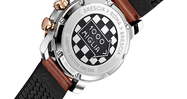 Im Jahr 2018 feierte Chopard drei Jahrzehnte Partnerschaft mit der Mille-Miglia-Rallye, „la corsa più bella del mondo“, die über 1600 Kilometer von Brescia nach Rom und wieder zurück führt. Diese in der Welt des klassischen Automobilsports einzigartige Verbindung, entstanden dank der Leidenschaft von Karl-Friedrich Scheufele, dem Co-Präsidenten von Chopard, für Oldtimer, findet dieses Jahr mit der Mille Miglia 2019 Race Edition eine Verlängerung. Erhältlich ist der robuste und präzise Chronograph für den modernen Gentleman in einer limitierten Edition von 1.000 Stück aus Edelstahl oder einer limitierten Edition von 250 Stück aus Edelstahl und 18 Karat Roségold.
