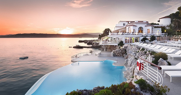 Ein Sehnsuchtsort par excellence ist das Eden Roc. Adel, Schauspieler, Staatschefs, Stars und Millionäre geben sich die Klinke im Hotel Du Cap Eden Roc im französischen Antibes in die Hand und der Aga Khan lernte hier seine spätere Frau Rita Hayworth kennen. Doch eigentlich war das Haus am Meer als Refugium für Journalisten mit Burnout gedacht. Die Geschäfte liefen 1889 nicht so wie geplant, das Hotel wurde schließlich als Winterdomizil für reiche Engländer und Russen verwendet. Erst 1914 kamen die ersten Sommergäste. Der Hingucker schlechthin, der Pool, wurde mit Dynamit in die Felsen gesprengt. Über Seile, Ringe und Taue kann man ins Meer "turnen".
