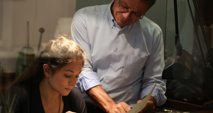 Alexander Skrein: Es hat sich schnell herumgesprochen und manche sind auch extra aus den Bundesländern angereist. Die Brautleute gehen ganz bewusst an die Wahl ihrer Eheringe heran, ebenso wie gleichgeschlechtliche Paare. Nachdem wir die Ringdesigns gemeinsam entwickelt haben, möchten sie die Goldschmiedin kennenlernen, die die Ringe schmiedet. Ein Höhepunkt ist das Finish der Ringe: gemeinsam mit der Goldschmiedin macht das Paar in einem eigenem Werkstatt-Termin die Oberfläche und letzten Handgriffe für ihren Partner oder ihre Partnerin. Das ist immer sehr emotional – für alle, auch für uns.