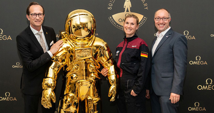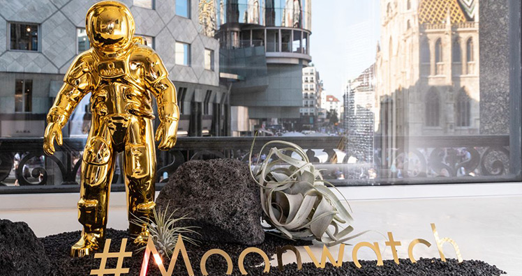 Das Rahmenprogramm im Zeichen des „Goldenen Astronauten“, dem Maskottchen des Jubiläums, beinhaltete auch eine Speedmaster-Sonderausstellung im Museumsbereich der Boutique, mit historischen Exponaten aus dem Omega-Museum Biel. Präsentiert wurden auch die großflächigen Weltraumfotos sowie die aktuelle Kampagne mit den Omega-Botschaftern George Clooney und Buzz Aldrin. Mit dabei war selbstverständlich auch die "Speedmaster Apollo 11 Moonshine™ Gold – 50th Anniversary" aus der mit 1.014 Stück limitierten Edition. (s. "Luxury News" vom 11. Juni 2019).