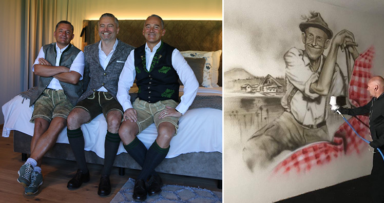 Der letzte, seit wenigen Wochen abgeschlossene Umbau, erforderte den größten finanziellen Aufwand seit Bestehen. Es wurden der Almwellness & Spa-Bereich um einen 20 Meter langen Infinity-Pool, um eine Panorma-Sauna und einen zweiten Außenwhirlpool erweitert, dazu kommt noch ein Almstrand am Naturschwimmteich. Zwölf neue Almgartensuiten, ein Yoga- und Aktivraum sowie ein Fitness-Studio sind die Neuerungen im Innenbereich. Neu gestaltet ist auch der Wintergarten, von wo aus den Gästen ein herrlicher Weitblick geboten wird. Und in der Parkgarage des Hotels verwirklichte sich der Ennstaler Tattoo-Künstler André Zechmann auf 500 Quadratmetern mit typischen Pierer Almmotiven.