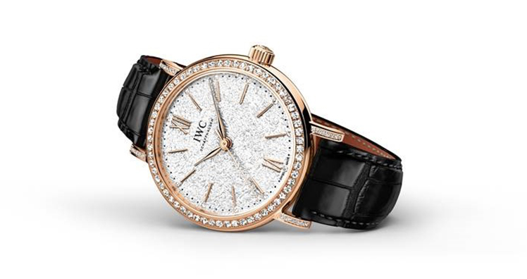 Mit einem reduzierten Gehäusedurchmesser von lediglich 34 Millimetern gehören die Portofino-Damenmodelle zu den kleinsten im IWC-Sortiment. Die Gehäuse aus 18 Karat Rotgold oder Edelstahl bzw. die versilberten, blauen oder grünen Zifferblätter sind mit Diamanten verziert und zu dieser farblichen Vielfalt stehen auch zwölf passende Armbänder der italienischen Lederwarenmanufaktur Santoni zur Auswahl. Diese sind im Handumdrehen per einfachem Bandwechsel-System auszutauschen.