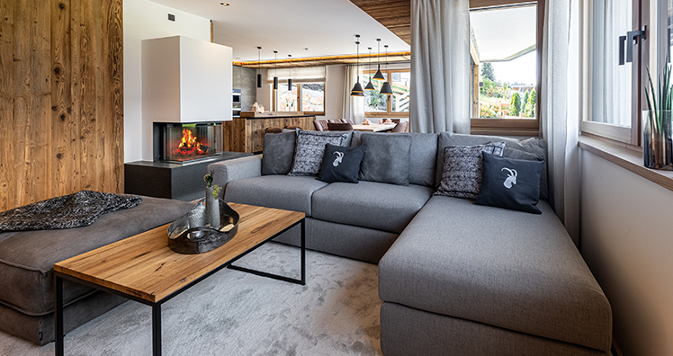 Hochwertige Neubauwohnungen an der Skipiste von Ellmau, exquisite Möblierung, exklusive Badezimmer, massive Eichenböden, moderne Technik, Aufzug, Tiefgarage, Abstell- und Kellerräume, Panoramaverglasung, Raffstore, Gas- Fußbodenheizung.