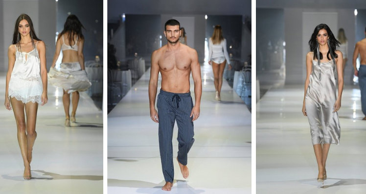 Elegante, von Herrenmode inspirierte, Seidensatin-Pyjamas bestehend aus kontrastbesetzten Jacken und langen Hosen in vier Farben überzeugen diese Saison. Kimono-Tops werden zu Palazzo-Hosen oder Zweireiher-Jacken getragen, und lange Slips mit dünnen Trägern oder Satin Tank-Tops zu passende Shorts. Klassiker wie elegante Strickwaren und unverzichtbare Boxershorts durften natürlich auch nicht fehlen.