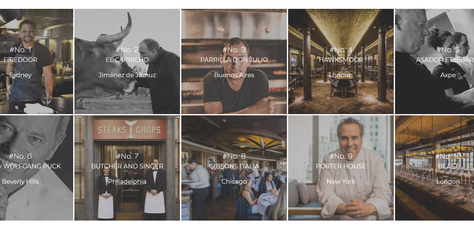 Das N.Y. Strip Media House mit Sitz in London und Repräsentanten in München, Wien, Zürich und New York hat eine Liste der 101 besten Steak Restaurants der Welt erstellt. Das beste Steaklokal der Welt ist das Firedoor in Sydney, dahinter reihen sich das El Capricho, Jimenez de Jamuz, und Parilla don Julio, Buenos Aires. Auch heimische Lokale finden sich unter den Besten der Besten.