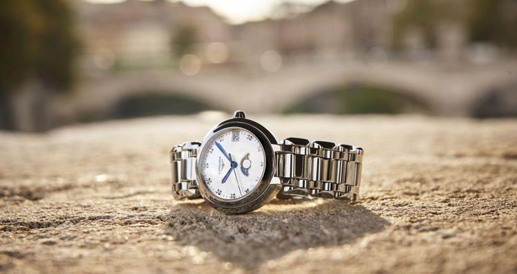 Das charakteristische runde Gehäuse der Longines PrimaLuna Modelle ist, wie ihr Name verrät, vom Mond inspiriert. Die Zeitmesser sind in verschiedenen Größen (zwischen 26,5 mm bis 34 mm) erhältlich und werden wahlweise von einem Quarz- oder einem Automatikuhrwerk (L592) angetrieben. Sie präsentieren sich in Dreizeiger-/Datum-Varianten sowie, seit kurzem, auch mit Anzeige der Mondphasen. Einige Varianten sind zusätzlich mit Diamanten besetzt und erwecken so den Anschein, als hätte es Sterne auf den Rand des Gehäuses geregnet.