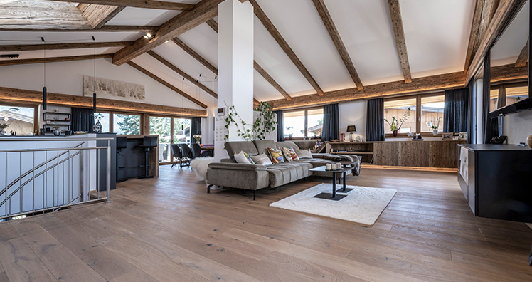 Im Obergeschoss befindet sich das Herzstück dieses modernen Wohntraums. Um den mittig platzierten Kamin mit Sichtfenster erwartet Sie ein die ganze Etage umfassender offener Raum, der in sich eine hochwertige und mit vielen liebevollen Details versehene Designerküche mit Wohn- und Essbereich vereint. Zusammen mit dem umlaufenden Balkon und der großzügigen Terrasse eine Wohlfühloase für die ganze Familie! Highlights wie die bodentiefen Fensterelemente, raffinierte Lichtgestaltung, Altholzelemente sowie viele weitere technische Feinheiten wie die fingerabdruckgesteuerte Türentriegelung erhöhen die Attraktivität der Immobilie.