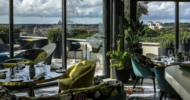 Kunstvoll verknüpft der Architekt und Interior-Designer die ursprünglichen Elemente mit der Moderne und der französischen Art de Vivre der Marke Sofitel. So zieren den Hoteleingang auffällige Farbakzente, die eine moderne Lounge mit klassischem Ambiente zaubern, während die Decken der Gästezimmer von Kunstwerken geschmückt sind, die die Illusion eines Himmelsgewölbes entstehen lassen. Jedes der eleganten Zimmer bietet eine zeitgemäße Ausstattung sowie Premium-Hermès-Toilettenartikel und andere kleine Luxusaccessoires. Dazu genießen die Gäste Panorama-Blicke und italienische Gaumenfreuden im Restaurant Settimo, zu dem auch eine elegante Dachterrassen-Lounge in der siebten Etage gehört – mit herrlichem Blick über den berühmten Villa Borghese Park bis zum Petersdom.