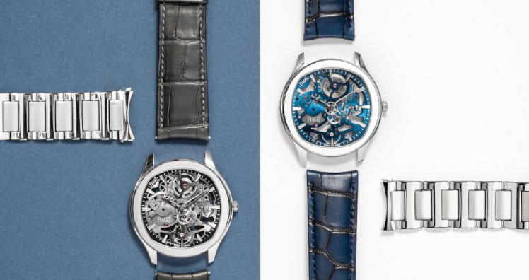 Die neue Piaget ist in zwei Designs erhältlich – das erste mit einem PVD- beschichteten Uhrwerk im für Piaget typischen Blau, das zweite mit schiefergrauen Oberflächen. Bei beiden Varianten wurde das berühmte Piaget Polo-Gehäuse auf eine Stärke von lediglich 6,5 mm reduziert (ist also fast 3 mm flacher als beim Original), und auch das akribisch skelettierte Uhrwerk und die Zeiger wurden reduziert, um ultimative Transparenz zu erzeugen. Ein durchsichtiger Gehäuseboden aus Saphirglas sorgt dafür, dass man das sorgfältig veredelte Uhrwerk mit seinen vielen Details von beiden Seiten der Uhr bewundern kann