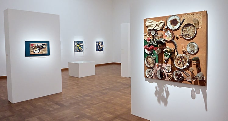 "In seinen Fallenbildern thematisiert Daniel Spoerri das Essen, das im letzten Jahr einen besonderen Stellenwert gewonnen hat. Mit seiner Eat Art weckt er die Sehnsucht nach gemeinsamen Momenten und Erlebnissen in der Gastronomie", sagt Brugger beim gemeinsamen Ausstellungsrundgang.