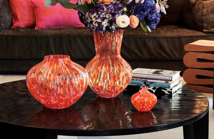 Diane von Fürstenbergs Lieblingsduft – Amber – ist in jeder der großen Kerzen der Kollektion enthalten, während die vier kleineren Kerzen Interpretationen von Zedernholz, Sandelholz, Amber und Kiefer sind, die von Diane von Fürstenberg selbst ausgewählt wurden. Die Espressotassen und Untertassen passen wunderbar in die Küche, während die runden Vasen aus farbigem Glas in Pink und Orange jeden Raum erstrahlen lassen, besonders wenn sie mit frischen Frühlingsblumen gefüllt sind. Und es ließe sich wohl kaum angemessener an den Postern mit inspirierenden Zitaten von Diane von Fürstenberg vorbeischlendern, als im dazu passenden luxuriösen Bademantel mit dem Diane-Print.