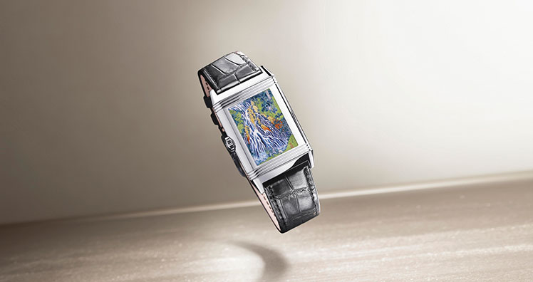 Die Gehäuserückseite vereint die europäische Handwerkskunst mit der japanischen Kunst in einer Miniaturmalerei aus Email und zeigt eine getreue Nachbildung eines Holzschnitts des Kirifuri Wasserfalls, den Katsushika Hokusai in den frühen 1830er-Jahren angefertigt hat. Der im Westen berühmte, japanische Künstler (etwa 1760–1849) war ein sehr produktiver Illustrator, Grafiker und Ukiyo-e-Künstler. Zu besonderem Ruhm gelangte er in seinen Achtzigern durch seine monumentale Holzschnittreihe 36 Ansichten des Berges Fuji, zu der auch "Die große Welle vor Kanagawa" (Kanagawa oki nami ura) gehört, eines seiner weltweit berühmtesten Werke. Als Hommage an dieses Kunstwerk hat Jaeger-LeCoultre 2018 eine limitierte Reverso herausgebracht, ebenfalls mit einer Miniatur-Nachbildung aus Email