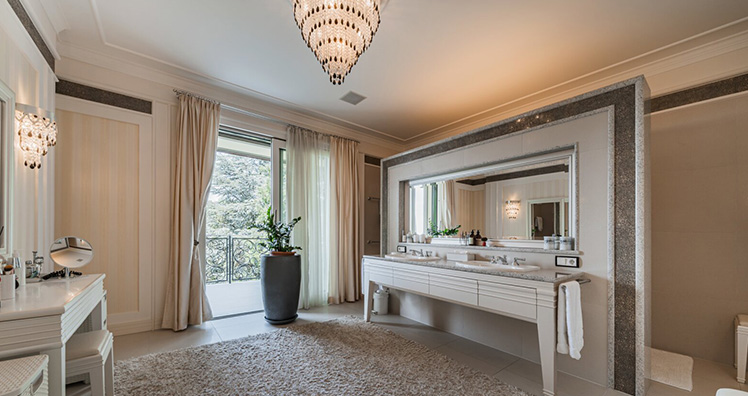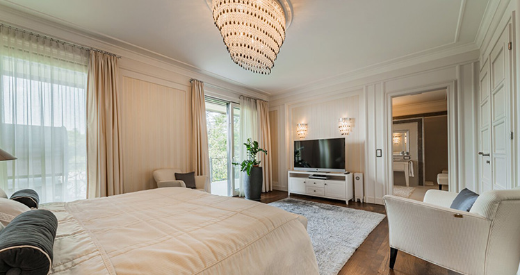 Auf vier Stockwerken des möblierten Anwesens, mit einer Gesamtfläche von ca. 600 m², finden Sie ausreichend Raum und Ihren persönlichen Wellnessbereich mit Blick auf den ca. 1.370 m² Garten, sowie die Waldfläche. Diese Villa gewährt mit der exklusiven Lage und den luxuriösen Annehmlichkeiten ein unvergleichliches Lebensgefühl.