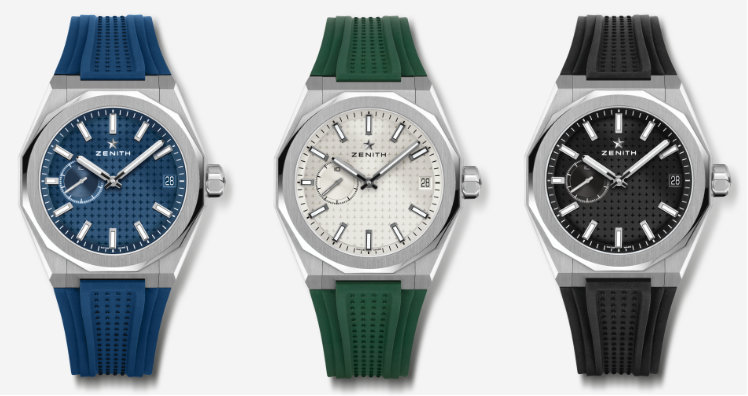 Alle drei Modelle sind um 8.300 Euro im autorisierten Fachhandel erhältlich und werden mit jeweils zwei Armbändern ausgeliefert. Passend zu dem blauen, dem schwarzen und dem silberfarbenen Zifferblatt wurden ein blaues, ein schwarzes und ein olivgrünes Kautschukarmband mit Sternmuster und Faltschließe aus Edelstahl gefertigt, die dank dem Schnellwechselsystem der Defy über Drücker auf der Rückseite leicht und ohne Werkzeug mit dem Edelstahlarmband getauscht werden können. (et)