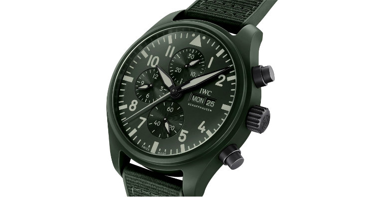 Auf der Uhrenmesse "Watches and Wonders" in Genf stellte IWC Schaffhausen kürzlich zwei neue Top Gun-Chronographen aus kratzfester farbiger Keramik in der Pilot’s Watches Kollektion vor. Die Pilot’s Watch Chronograph Top Gun-Edition "Lake Tahoe" verfügt über ein Gehäuse aus weißer Keramik und ein schwarzes Zifferblatt. Die Pilot’s Watch Chronograph Top Gun-Edition "Woodland" kombiniert ein Gehäuse aus dunkelgrüner Keramik und ein grünes Zifferblatt mit Drückern, Krone und Gehäuseboden aus mattschwarzem Ceratanium. Die Produktion dieser neuen Modelle ist auf je 1.000 Exemplare pro Jahr limitiert.