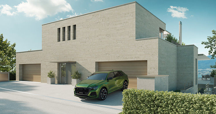 2 Geschosse, 8 Zimmer, 4 Bäder, offene Küche, Aufzug, Garten, teilüberdachte Terrasse, Infinity-Pool, privates SPA mit Sauna auf Dachterrasse (Sky Deck), beheizte Garage…