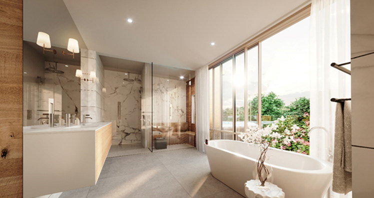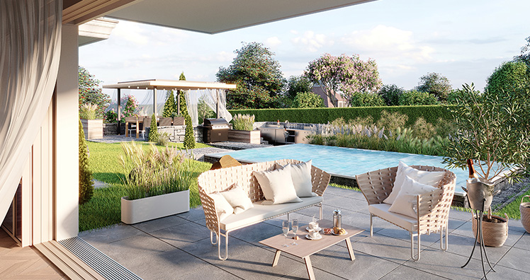 Es gibt die Klassiker eines luxuriösen Domizils: beheizter Pool, offener Kamin, Lift in die Wohnung, Terrassen, architektonisch gestalteter Garten, Sauna, Whirlpool, Pergola, Seerosenteich, repräsentatives Entrée…