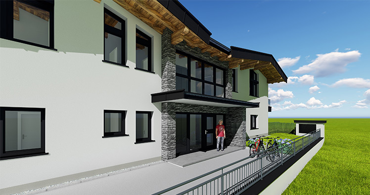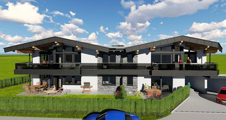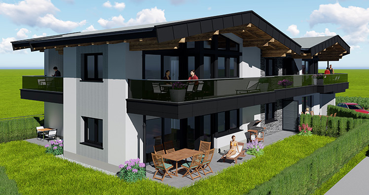 Ein Reihenhaus ist die größte Variante dieses Neubaus und südwestlich ausgerichtet. Für diese Option werden zwei Tops zu einem Reihenhaus vereint.
