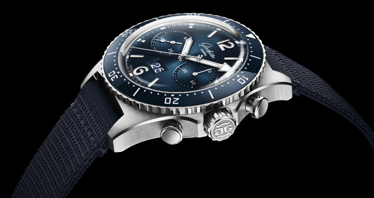Einmal mehr präsentiert die Manufaktur aus der deutschen Uhrenstadt Glashütte ein echtes Original, und das in mehr als einer Hinsicht. Das 43-Millimeter-Modell mit dem handgefertigten Automatikkaliber ist die erste Taucheruhr des Hauses, die über einen Chronographen-Mechanismus verfügt.