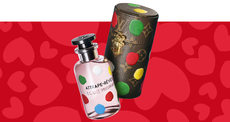 Mit Attrape-Rêves bringt Louis Vuitton einen exklusiven Duft, dessen Pfingstrosen-Bouquet mit rohem Kakaopulver verschmilzt und ein Hauch von Patchouli wird durch frische Litschi-Noten belebt. Die japanische Künstlerin Yayoi Kusama verzierte die Flacons des ikonischen Dufts mit verspielten und lebendigen Painted Dots, die eine einzigartige Haptik aufweisen und farblich perfekt aufeinander abgestimmt sind. Grüne, gelbe, rote, blaue und weiße Punkte sind auf Attrape-Rêves und dem dazugehörigen Monogram Travel Case aus Canvas aufgetragen worden. Darüber hinaus wurde das Original-Monogram der Maison mit bunten Punkten übermalt.