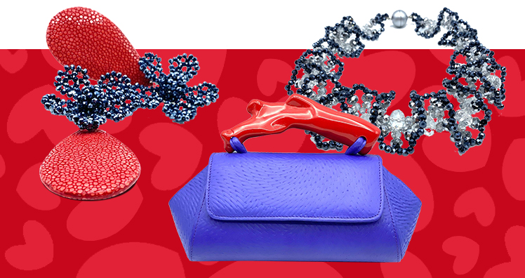 Als Designerin für unvergleichbare Accessoires hat Susanne Kitz in den letzten 25 Jahren einen Namen über die Grenzen erreicht. Jedes ihrer Kunstwerke ist und bleibt ein Unikat, zum Valentinstag bietet sich zum Beispiel ein Collier aus kleinen Kristallsteinen, in Wellen gestaltet, ideal an. Ebenso schmeichelt jeder Trägerin eine ausgefallene Kombination in Tropfenform aus Leder und Kristallsteinen in Korallenrot und Nachtblau als Ohrschmuck. Ein must have sind auch Handtaschen der exquisiten Art, erhältlich in vielen Farbkombinationen, hier abgebildet eine Kombination in Violett und Korallenrot, mit ausgefallenem in Acryl gearbeiteten Griff. Erhältlich online bzw. in Ihrem Shop in Wien 1, Weihburggasse 7.