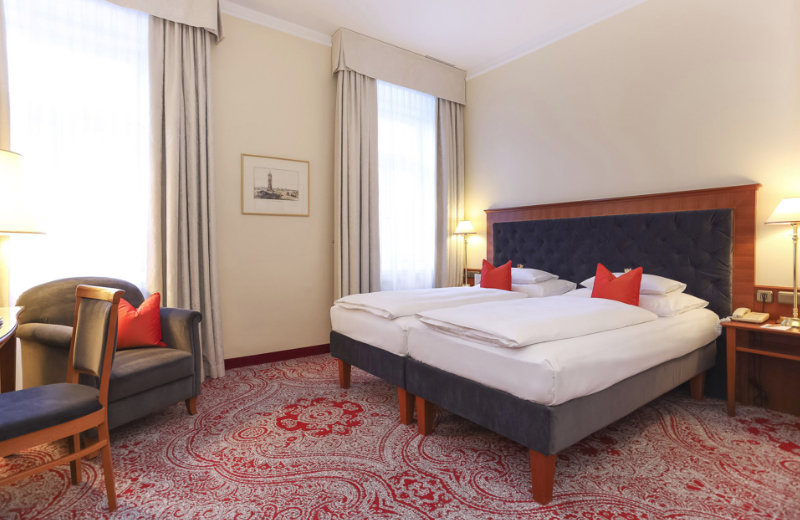 Die Zimmer und Suiten des Hauses verbinden großzügige Architektur mit zeitgemäßem Komfort. Im Salon Imperial bekommen die Gäste ein opulentes Frühstück serviert, die Bar steht ihnen bis Mitternacht offen und im kleinen aber feinen Wellnessbereich lässt es sich vorzüglich kaiserlich relaxen.