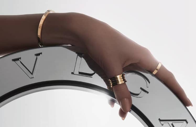Die neuen Kreationen vereinen zeitlose Eleganz mit Innovation und verleihen dem Bulgari Klassiker mit Diamant-Pavé und ihrem markanten Nietendesign in 18-karätigem Roségold einen raffinierten Kontrast. Die Linie umfasst eine Halskette mit Anhänger, einen 2-Band Ring und einen Armreif – allesamt kräftig schimmernd in Roségold und inspiriert vom berühmtesten Amphitheater der Welt, dem Kolosseum als wahrer Ausdruck des Erbes von Bulgari.