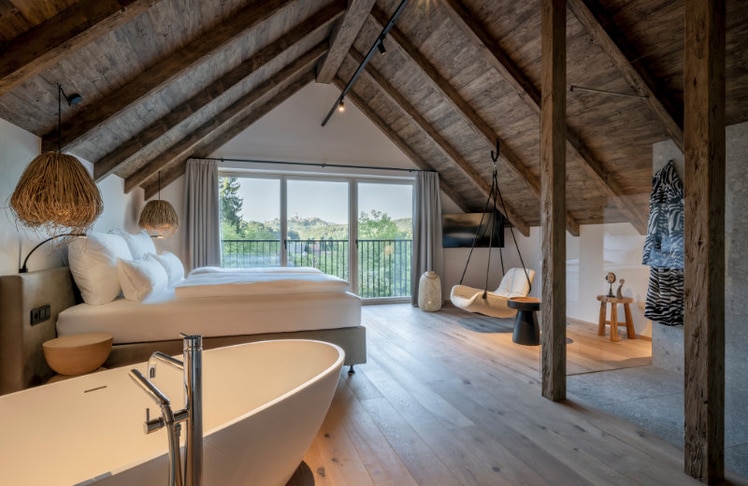 In dieser harmonischen Umgebung, befindet sich, etwas abgelegen und doch gut erreichbar, eine Luxus-Lodge nach südafrikanischem Vorbild, das Hideaway Julianhof Premium Guesthouse & Spa. Dafür wurde ein alter Bauernhof umgebaut, das 200-jährige Gebälk des alten Stalls mit viel Aufwand restauriert und so entstand, dank einer Kombination aus offener Architektur und einzigartigem Interior, ein einzigartiges Wohlfühl-Refugium in Wieden-Klausen, nahe der Marktgemeinde Straden.