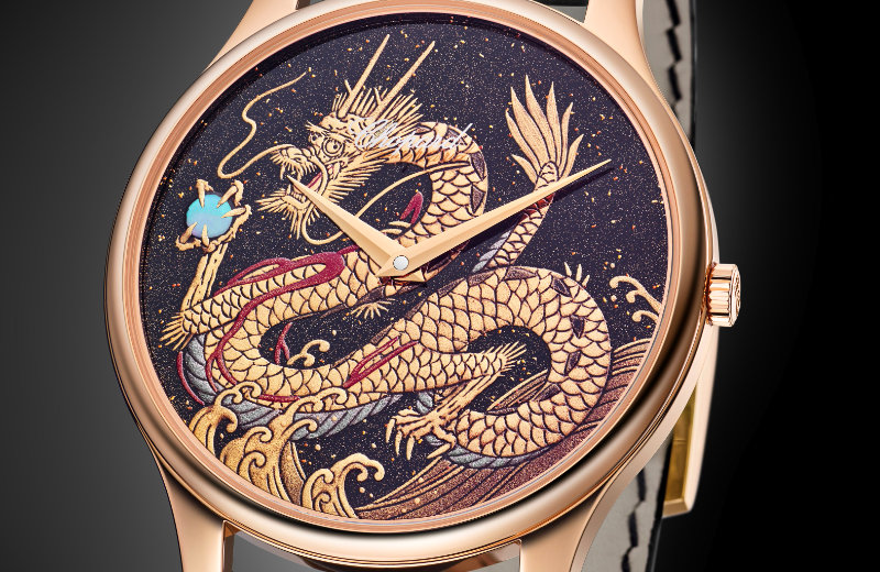 Von den chinesischen Traditionen inspiriert stellt Chopard das Sondermodell L.U.C XP Urushi Year of the Dragon vor, eine Uhr mit 39,5 Millimeter großem Gehäuse in 18 Karat Ethischem Roségold, in dem das hauseigene Kaliber L.U.C 96.17-L arbeitet. Dank eines Mikrorotors besitzt das Automatikwerk eine besonders flache Bauweise und ermöglicht das nur 6,80 Millimeter hohe Gehäuse. Die Chopard Manufacture verbindet in der Uhr technische Kompetenz und künstlerisches Flair.