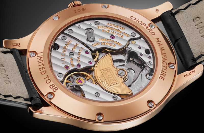 In der Welt der Uhrmacherkunst ist die Verbindung von Gold und Lack überaus selten, bedeutet doch die Umsetzung eine große Herausforderung. Das Zifferblatt ist ein Kunstwerk, das mit Urushi-Lack, Goldstaub und Perlmutteinlagen meisterlich gestaltet ist. Damit setzt Chopard die Geschichte dieses faszinierenden Materials im zwölften Jahr fort: Das Zifferblatt wurde in Japan von einem weltbekannten Handwerkskünstler gefertigt, der auf die Maki-e-Technik spezialisiert ist.