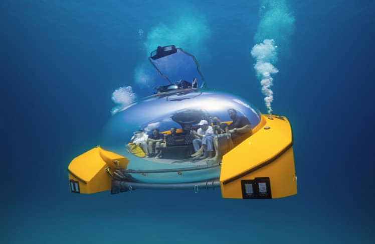 Der 270-Grad-Panoramablick durch den verglasten Acrylrumpf der Scenic Neptune II ermöglicht den Passagieren ein umfassendes Unterwassererlebnis und vermittelt das Gefühl, nahtlos mit dem Ozean verbunden zu sein.