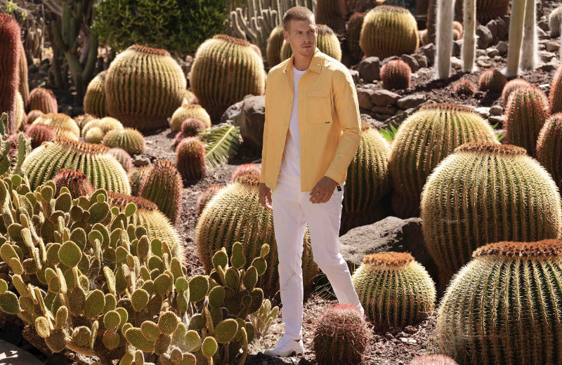 Oben und unten in sonnigen Gelb- und Orangetönen passt die Jacke Bisor Recco aus technischer Baumwolle zu jedem sommerlich schicken Outfit. Genauso sind Wheel Mirto und Coast Chiatri charakteristisch-modische Highlights.