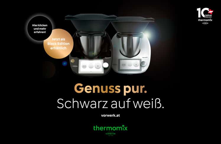 *Bis Ende Juni 2024 ist der Thermomix® TM6 österreichweit nun auch in Schwarz erhältlich - solange der Vorrat reicht!