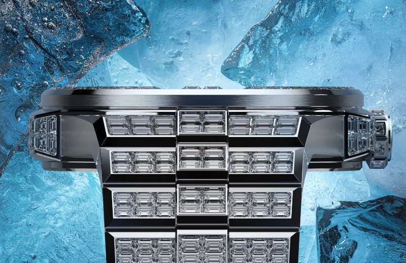 Mit seinen geometrischen Formen und den grafischen Linien passt der Baguette-Schliff der Edelsteine perfekt zur Ästhetik der Alpine Eagle Kollektion und deren charakteristischen Lichtreflexionen.