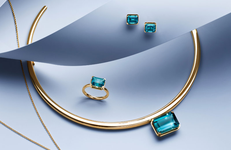 Bucherer Fine Jewellery verwendet für die exklusive "The Blue Path Collection" seltene Indigolithe im Smaragdschliff, verarbeitet mit recyceltem 18 Karat Gelbgold. Wunderschön harmonisch ergänzen sich das Gelbgold und der Zentrumsstein durch ihre Farbgebung, der gewählte Schliff und die Fassung heben den Indigolith besonders schön hervor und verleihen ihm noch mehr Ausdruck.