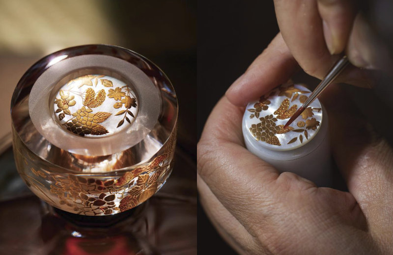 Ausgeliefert wird das Luxusprodukt in einer prächtigen, aus zwölf verschiedenen japanischen Holzarten bestehenden Holzbox. Sie ist mit kunstvollen Maki-e-Darstellungen von Blumen und Gräsern der vier Jahreszeiten verziert, die die Verbindung von Vergangenheit und Zukunft – das Herzstück von Hibiki – darstellen.