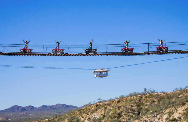 Ziplines sind nichts Neues. Aber Fahrrad-Ziplines? Cactus Tours brachten Anfang dieses Jahres die erste Fahrrad-Zipline nach Los Cabos – und stellte mit einer Länge von 339,39 Metern einen Guinness-Weltrekord auf. Wer doch lieber die traditionelle Zipline fahren möchte, kann bei Wild Canyon Adventures, zwischen Cabo San Lucas und San José gelegen, acht Seilbahnen durch eine beeindruckende Schlucht sausen und von den Plattformen die Aussicht aufs Meer genießen. Mutige können in dem weitläufigen Outdoor-Park auch einen unvergesslichen Bungee Jump machen oder sich im Jeep hinters Lenkrad setzen und Hängebrücken überqueren.